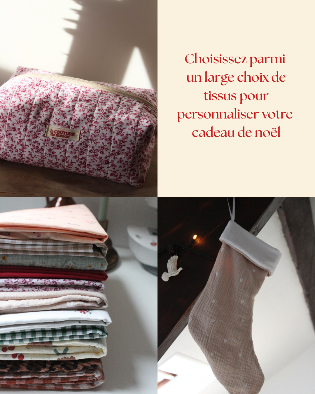 Choisissez vos tissus préférés et créez votre trousse de toilette ou votre chaussette de noël pour les fêtes ! 🎀