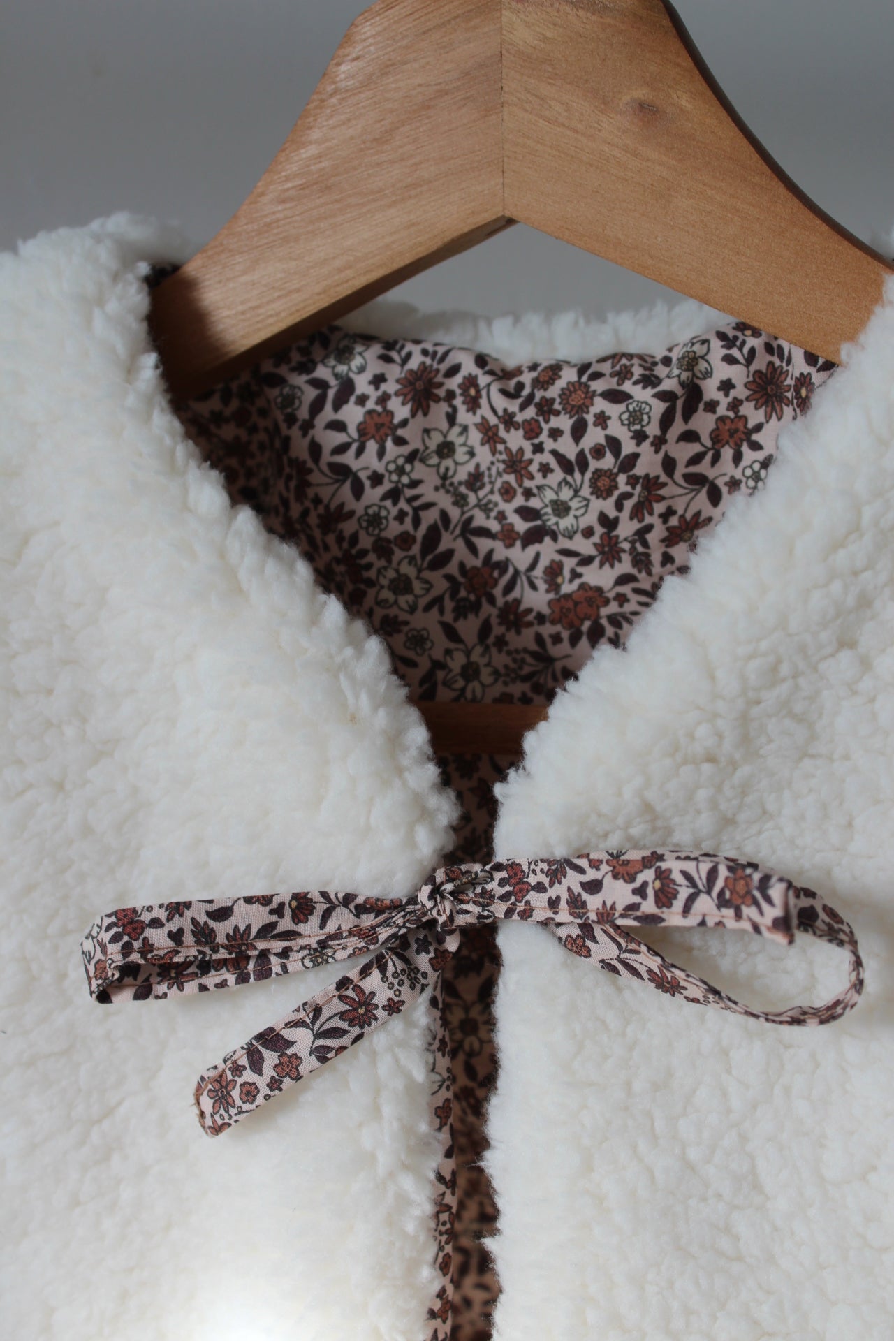 Composition : fausse fourrure sherpa beige / coton à motifs fleuris