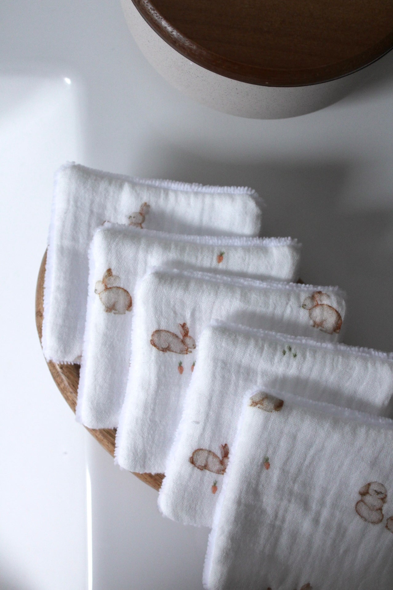 Un lot de 5 cotons lavables pour prendre soin de la peau de bébé avec un côté éponge d'une douceur extrême